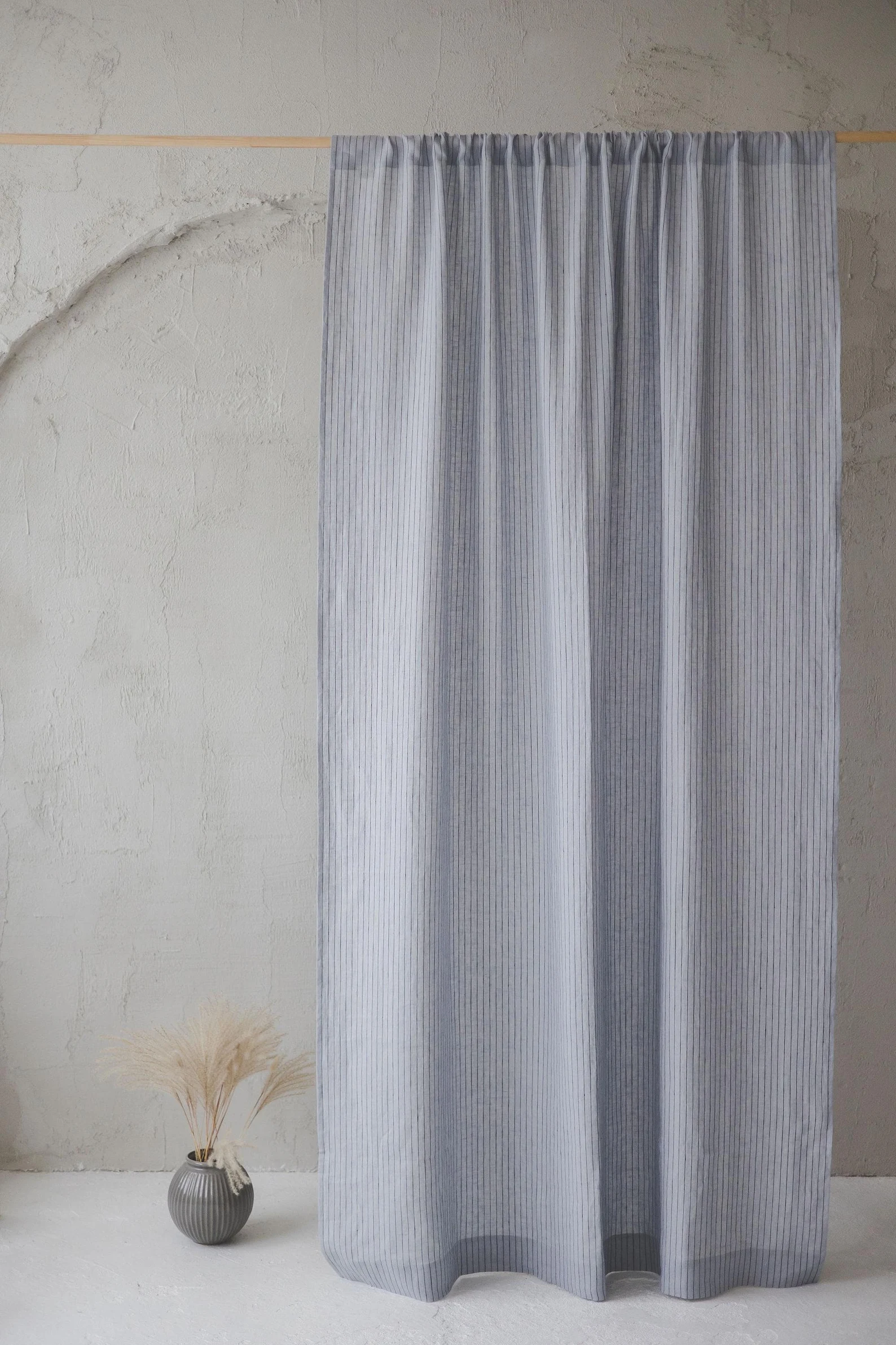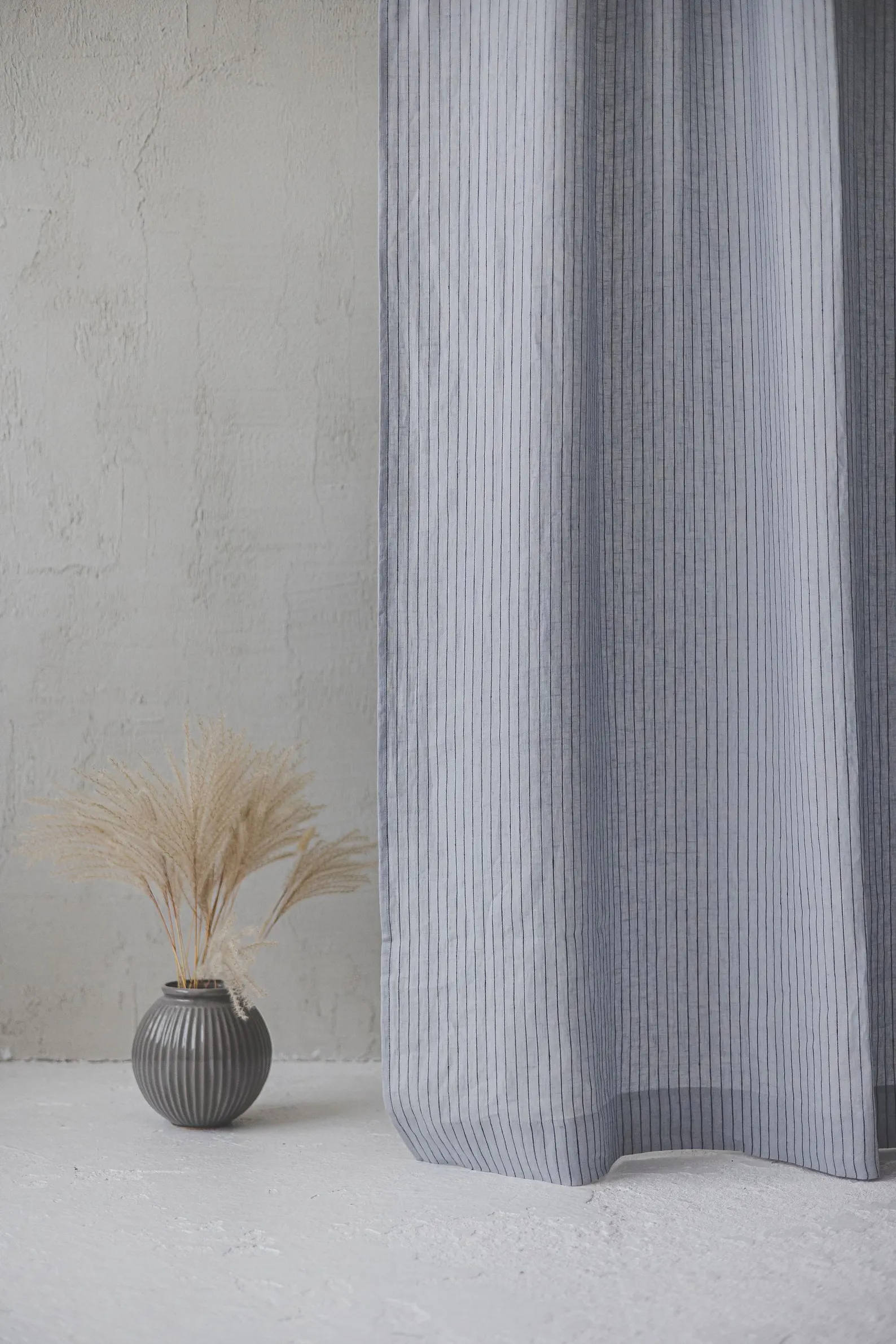 Enhance your space with our Grey Linen Curtains featuring subtle black stripes, crafted from high-quality medium-weight linen. These handmade curtains offer a perfect balance between privacy and light filtering, making them ideal for any room in your home. The minimalist grey design with delicate black stripes adds a touch of modern sophistication, seamlessly blending into various décor styles. Made from 100% natural flax linen, these curtains are eco-friendly, durable, and become softer with every wash. Elevate your home with this timeless, stylish, and sustainable window treatment.